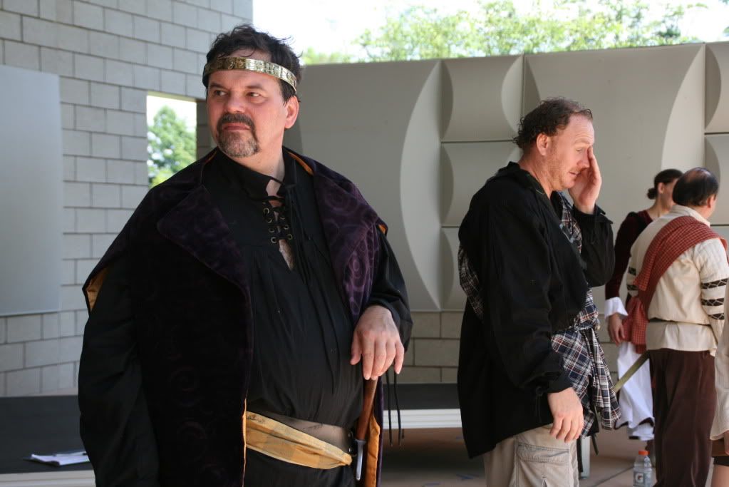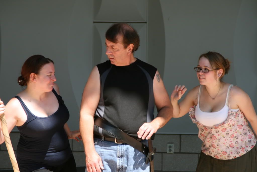 This was just the beginning of a series of funny incidents. I happened to be making a tunic for Lady MacDuff...while using Lady MacBeth's measurements...and let me tell you...their busts are not the same size, but lucky for me I managed to fix it! And by "it" I am referring to the tunic, not their busts. During the process of reopening the seams, I realized I was opening the seams on the bottom of my shirt. This was quickly followed by me rehearsing by lines in the shower at 5 AM and accidently replacing the word "scale" with "squirrel."