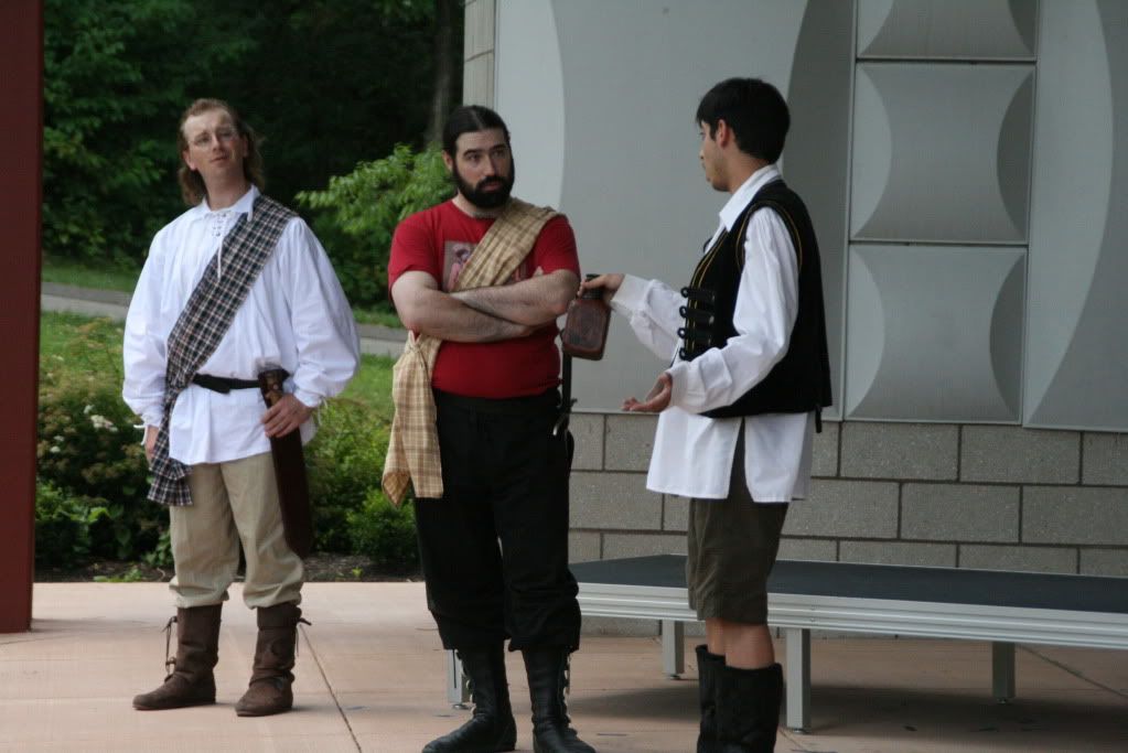 Bobby Karimi has been hard at work sewing various pleats and skirts, de-lace-ing gowns and grappling with sleeplessness, I'm sure. We've had only a few fashion faux pas so far, so without further ado, I'll let Bobby himself share some of the ensuing hilarity:My first introduction to Poor Yorick's Players can only be described as a botchy audition. I mentioned I also did costuming, and a few weeks later I get a call for a small part and a lovely position as costume designer. I'm in cloud nine right now. Careful planning with the oh-so-amazing Director extraordinaire, Julie Babal, and communication with cast members, has let us remain under budget (brings a tear of happiness to my eye to write), and have a nice array of costumes that can be reused in the future.
